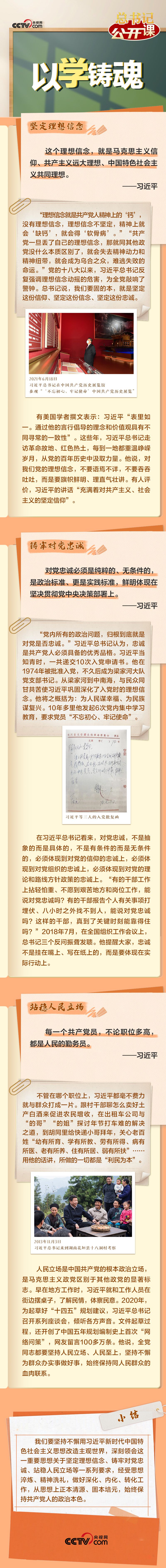 “以學鑄魂,就是要做好學習貫徹新時代中國特色社會主義思想的深化、內(nèi)化、轉(zhuǎn)化工作,從思想上正本清源、固本培元,筑牢信仰之基、補足精神之鈣、把穩(wěn)思想之舵?!苯衲?月,習近平總書記在廣東考察時圍繞“以學鑄魂”提出明確要求,強調(diào)“堅定理想信念”“鑄牢對黨忠誠”“站穩(wěn)人民立場”。