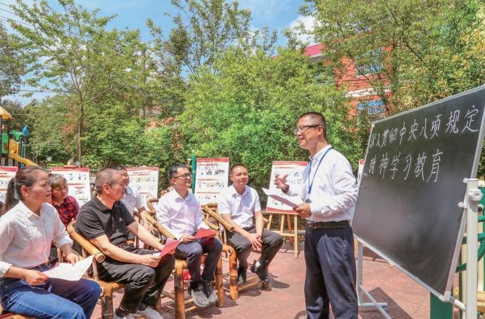 2025年4月18日,在福建省莆田市城廂區(qū)華亭鎮(zhèn)五云村,紀(jì)檢監(jiān)察干部為黨員群眾細(xì)致解讀中央八項(xiàng)規(guī)定精神內(nèi)涵及實(shí)踐要求。