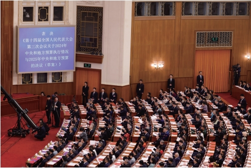 2025年3月11日,十四屆全國人大三次會議在北京人民大會堂舉行閉幕會。會議表決通過關于2024年中央和地方預算執(zhí)行情況與2025年中央和地方預算的決議。