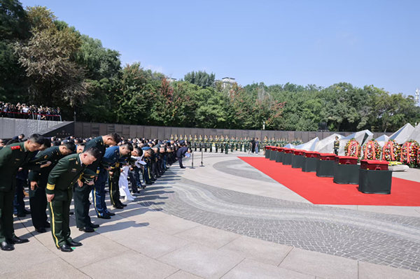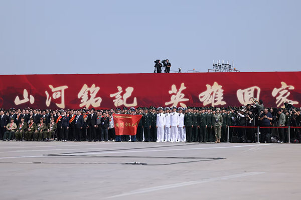 9月12日上午,沈陽桃仙國際機(jī)場碧空萬里,30位在韓中國人民志愿軍烈士英靈及267件遺物由我空軍運-20專機(jī)從韓國接回祖國。儀式現(xiàn)場莊嚴(yán)肅穆,中央和國家機(jī)關(guān)青年干部與抗美援朝老戰(zhàn)士、烈士親屬、部隊官兵、奧運健兒、勞動模范和青少年學(xué)生等1500余名各界代表列隊肅立,齊唱國歌,向烈士遺骸行三鞠躬禮,以此表達(dá)對先烈們的深切緬懷和無盡哀思。同日下午,青年代表赴抗美援朝烈士陵園祭掃,參觀“最可愛的人——抗美援朝英烈主題展”,聆聽退役軍人事務(wù)部烈士紀(jì)念設(shè)施保護(hù)中心青年紅色文化宣講隊現(xiàn)場講解,深入了解志愿軍英烈可歌可泣的戰(zhàn)斗故事。13日上午,第十二批在韓志愿軍烈士遺骸安葬儀式在沈陽抗美援朝烈士陵園舉行。中央和國家機(jī)關(guān)青年代表與現(xiàn)場全體人員排隊凝視禮送烈士棺槨,向烈士獻(xiàn)花致敬,并瞻仰烈士英名墻。
